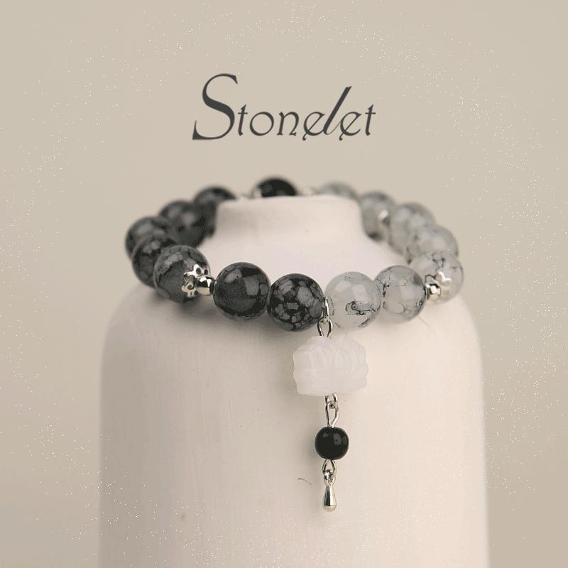 Stonelet British Museum-Inspired Black and White Stone Bracelet Jade-Inspired Pendant Unisex Artistic Design Heritage-Inspired Jewelry-6016