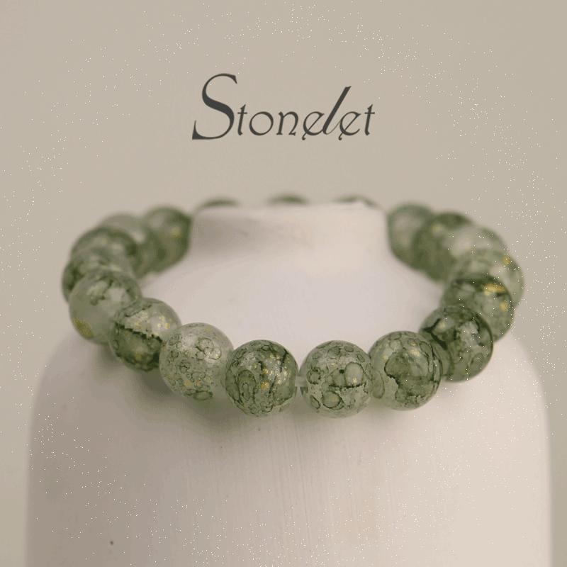 Stonelet Forest Spirit Green Phantom Glass Bracelet Minimalist Oriental Style Delicate Crystal Beads Nature-Inspired Gift for Her-6007