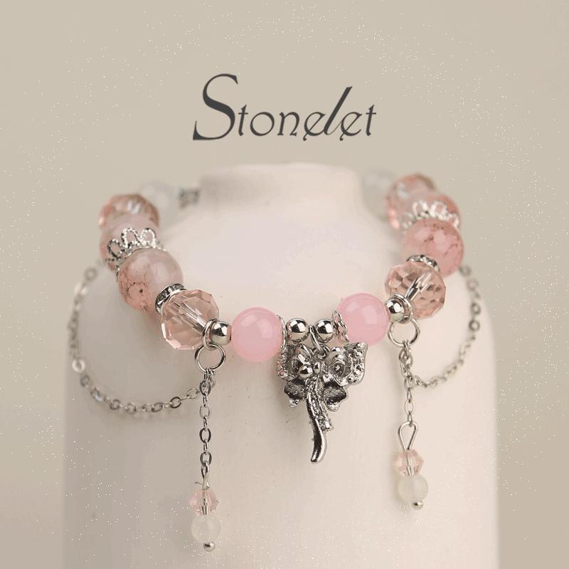 - Stonelet Frosted Berry Glow Gilded Glass Bracelet: This bracelet features a unique design inspired by pink crystal. It showcases a long chain with clear glass accents, creating a delicate aesthetic. Perfect for those who appreciate subtle elegance.