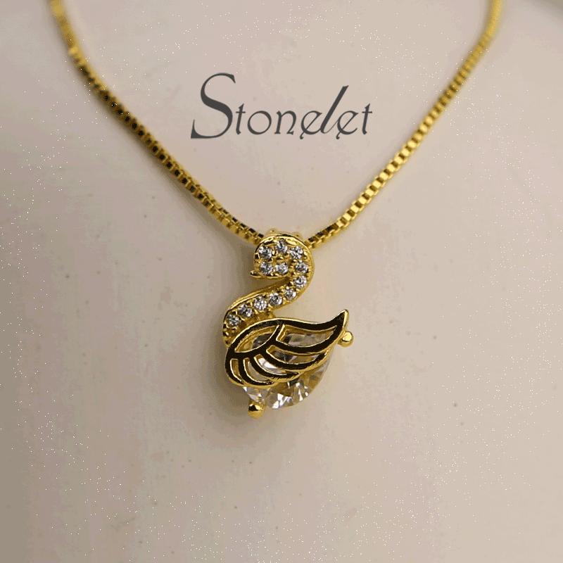 The Stonelet Leda and Swan Necklace features a zircon design, making it an elegant and unique piece. This necklace is versatile and suitable for daily wear or special occasions. It adds a touch of sparkle to any outfit, enhancing your collarbone beautifully. Perfect as a gift for daily wear or parties.