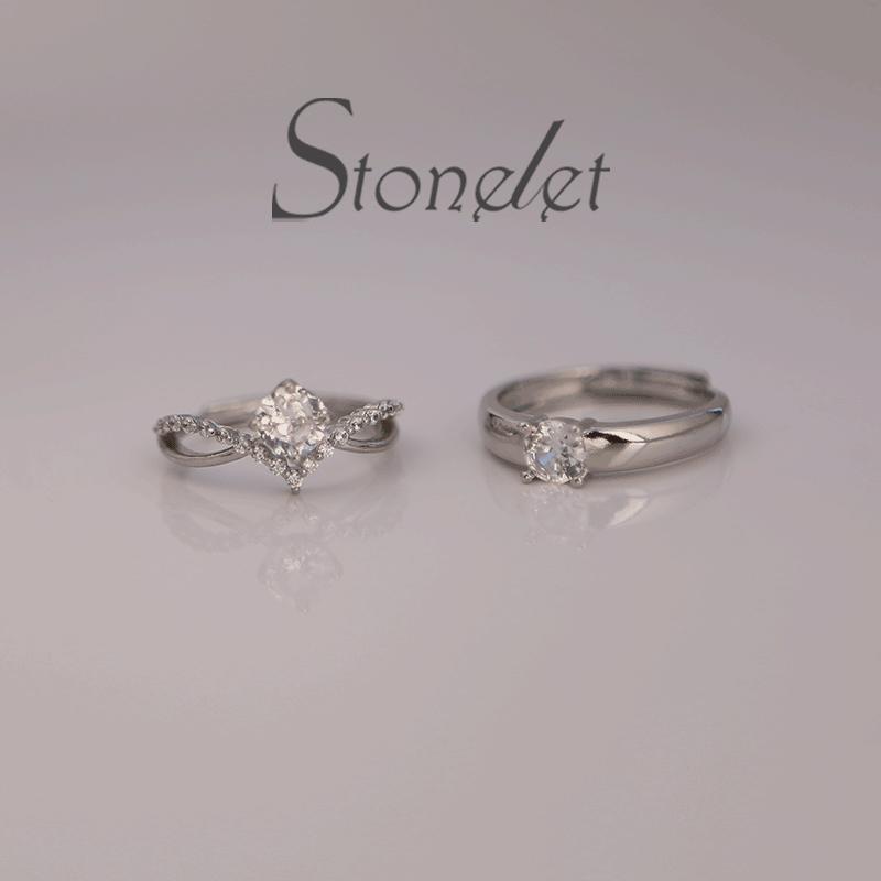 Stonelet Moissanite Couple Rings – Adjustable | Faux Diamond | Elegant Wedding & Engagement Gift Accessory