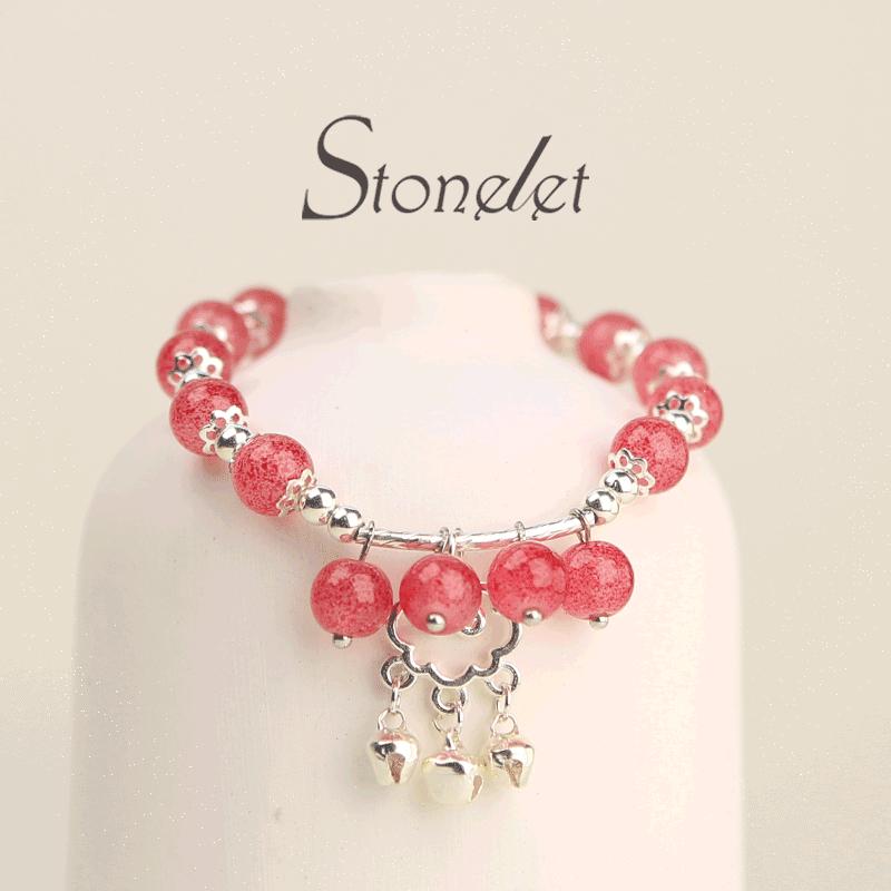 Stonelet Pink and White Lucky Charm Glass Bracelet Forest-Inspired Sweet Aesthetic Unique Gift for Students and Friends-6014
