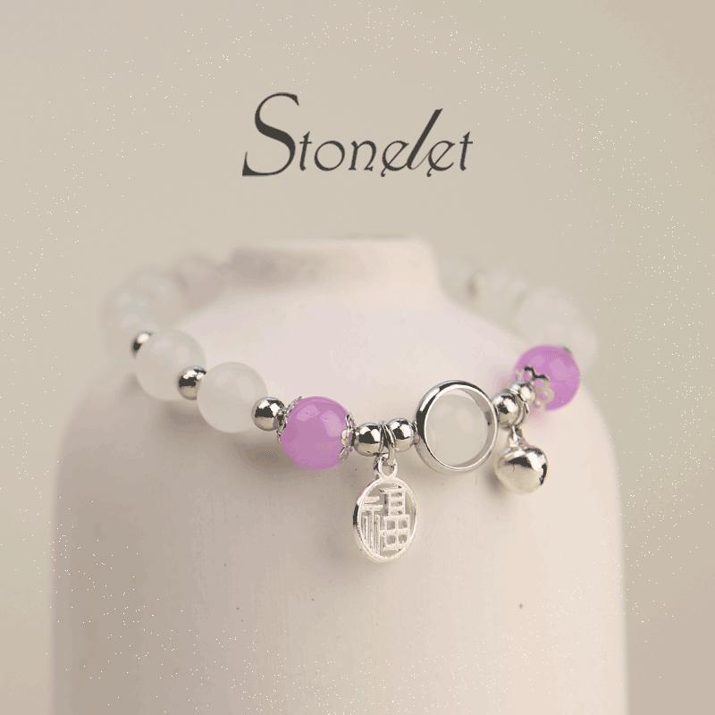 Stonelet Purple White Cat’s Eye Bracelet Jade-Inspired Elegant Unique Design Delicate Friendship Jewelry Lucky Beaded Bracelet for Students Gift for Best Friends-6033
