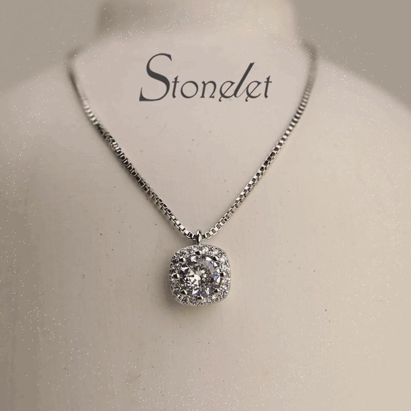 š Elegant Stonelet Silver Square Crystal Necklace š