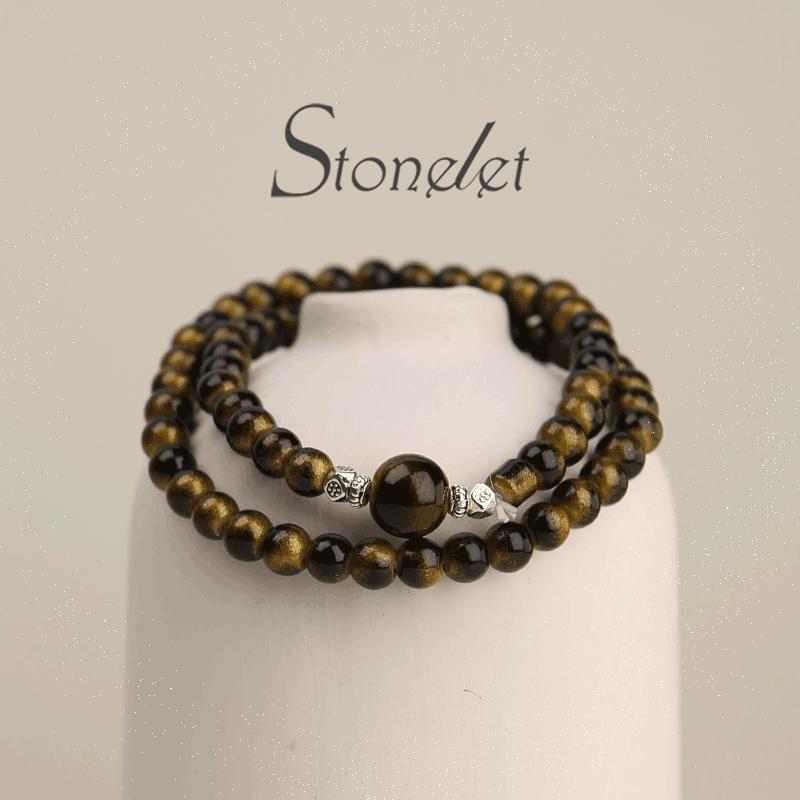 Stonelet Tiger Eye Beaded Bracelet Elegant Minimal Design Oriental Vintage Style Delicate Layered Jewelry-6015