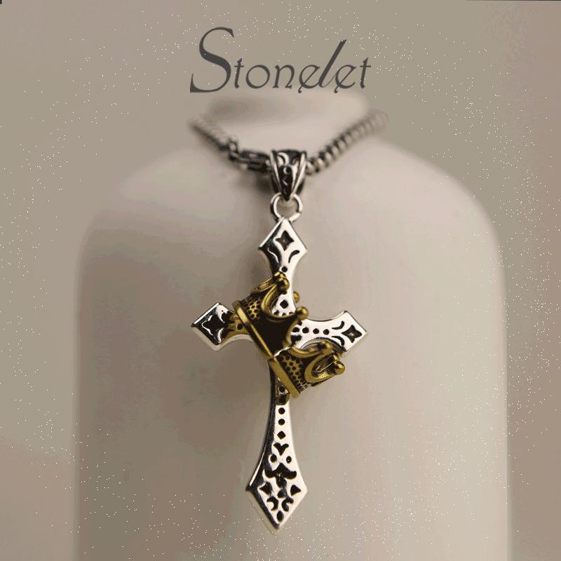 ⨠Stonelet Titanium Steel Crown Cross Necklace āØ