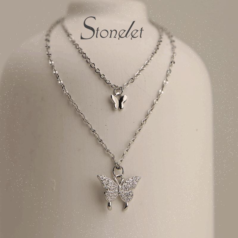 Stonelet Titanium Steel Double Layer Butterfly Necklace Durable Elegant Chic Unique Lightweight Summer Collarbone Gift Accessory